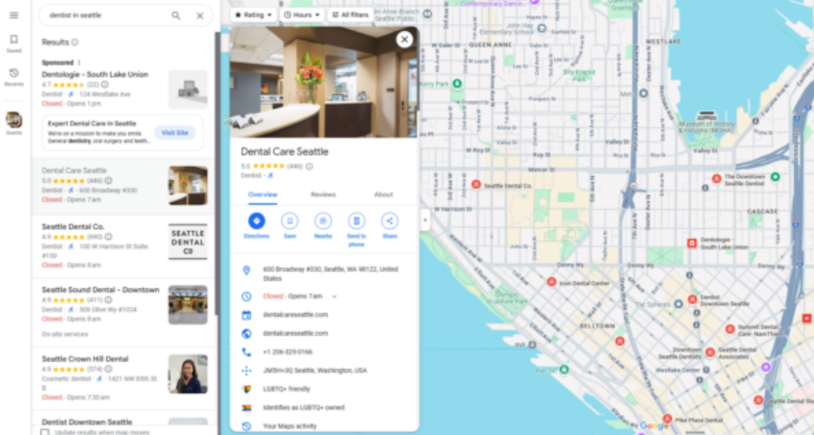 When someone searches “dentist near me,” Google shows: