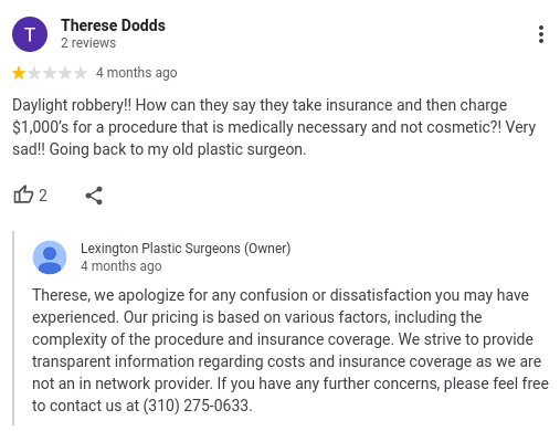 “Thank you for your feedback. We regret your experience and would appreciate the opportunity to understand and improve. Please contact our clinic directly so we can assist you better.”
